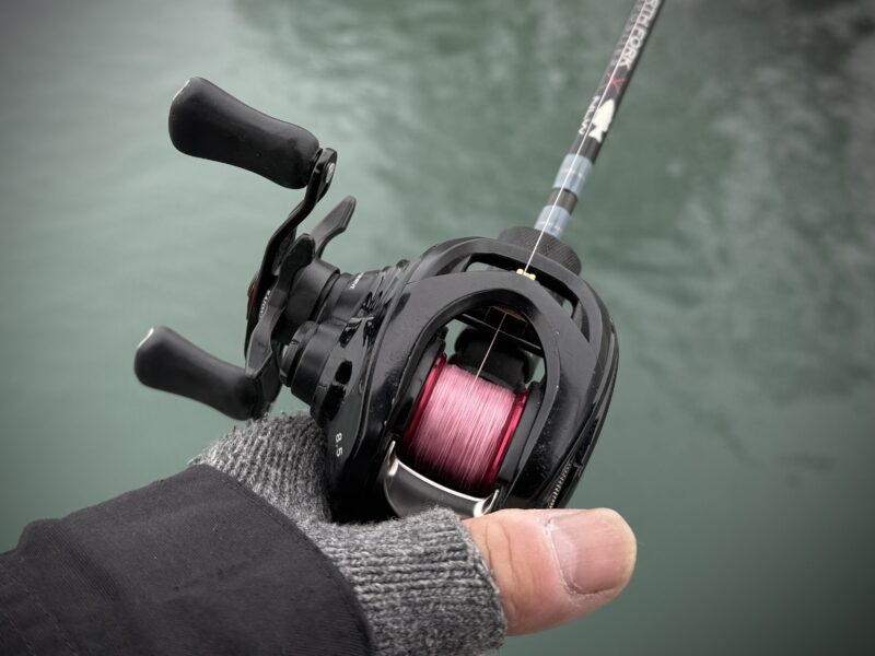スピニングリールの場合、リールのハンドルから感じられる情報は少なめですが、ベイトタックルの場合はロッドグリップから伝わってくる情報にプラスしてリールのハンドルからも色々感じられるので、そのメリットもかなりあるように感じています。